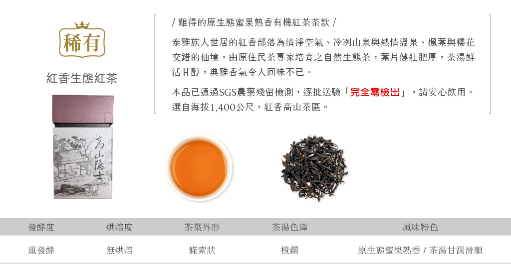 / 難得的原生態蜜果熟香有機紅茶茶款 /